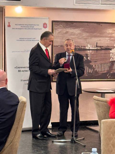 15 декабря 2025 года в Москве в Доме русского зарубежья имени Александра Солженицына состоялась церемония вручения Почетной награды Совета министров Республики Крым и старейшего всемирного объединения, представляющего организации соотечественников более чем из 50-ти стран мира – Международного Совета Российских Соотечественников (МСРС).